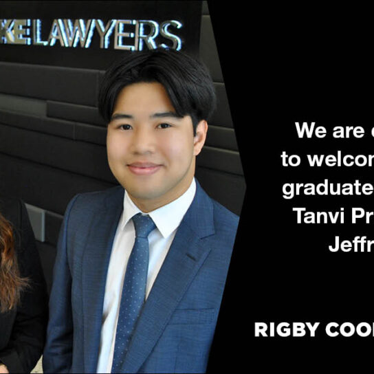 Rigby Cooke Lawyers is delighted to welcome our 2026 law graduates, Tanvi Prabhu and Jeffrey Or