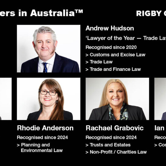 Rigby Cooke Lawyers Customs and Trade Partner, Andrew Hudson, and Workplace Relations Partner, David McLaughlin, have both been ranked in the 2020 edition of Best Lawyers.